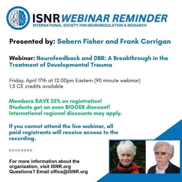 Neurofeedback and DBR: A Breakthrough in the Treatment of Developmental Trauma presented by Sebern Fisher, MA, and Frank Corrigan, MD, FRCPsych